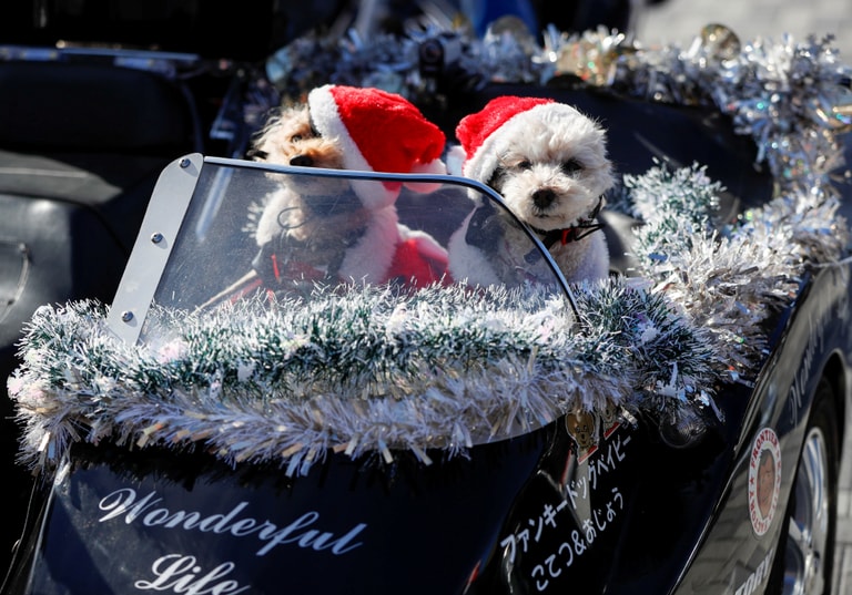 在日本東京街頭,哈雷聖誕俱樂部(Harley Santa Club)發起一場車聚,車主們紛紛騎著掛滿聖誕裝飾的機車上街,一方面炒熱聖誕節的氣氛,另一方面則喚醒民眾對受虐兒議題的重視。車聚上,一名車主將狗狗打扮成聖誕老人的樣子,讓牠們坐進邊車一起出門同樂。