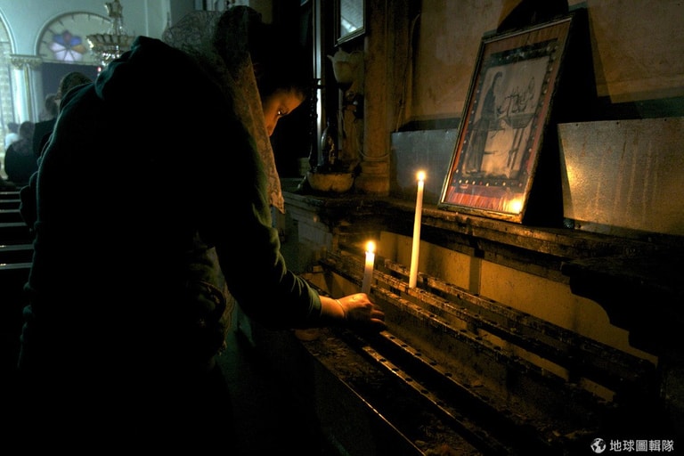 當地民眾在教堂中點燃祈福的蠟燭。敘利亞北邊發生戰亂讓許多居民逃到東北邊的教堂中。