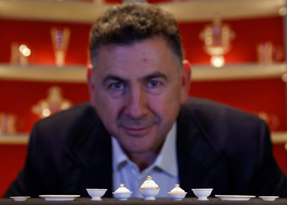 在英國首都倫敦,高檔瓷器、餐具商店古德(Thomas Goode and Co)的董事長山德爾森(Johnny Sandelson)對著鏡頭展示一排出自瑪麗王后袖珍屋(Queen Mary's Dolls' House)的餐具,這套餐具不久後將於蘇富比拍賣會上拍賣。