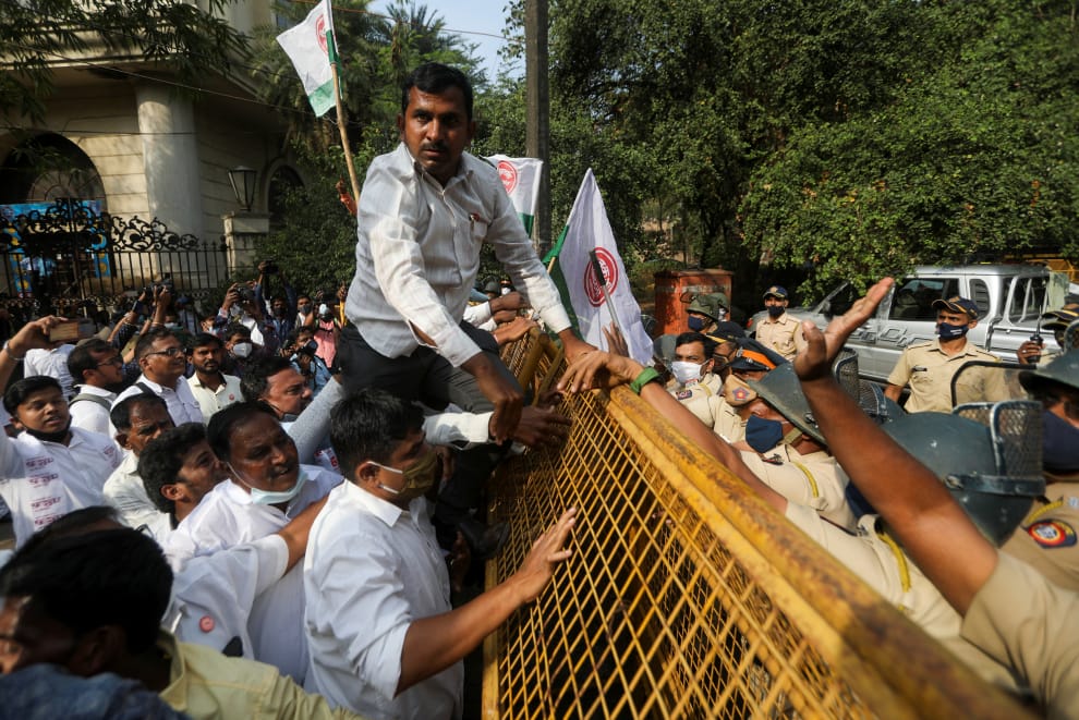 在印度大城孟買,許多印度農夫為了抗議印度政府新通過的一系列農業法案,走上街頭與警察發生衝突。