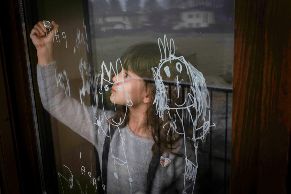 在義大利北部的聖菲奧拉諾(San Fiorano),小女孩托尼奧洛(Bianca Toniolo)拿起筆在房間的窗戶上作畫。