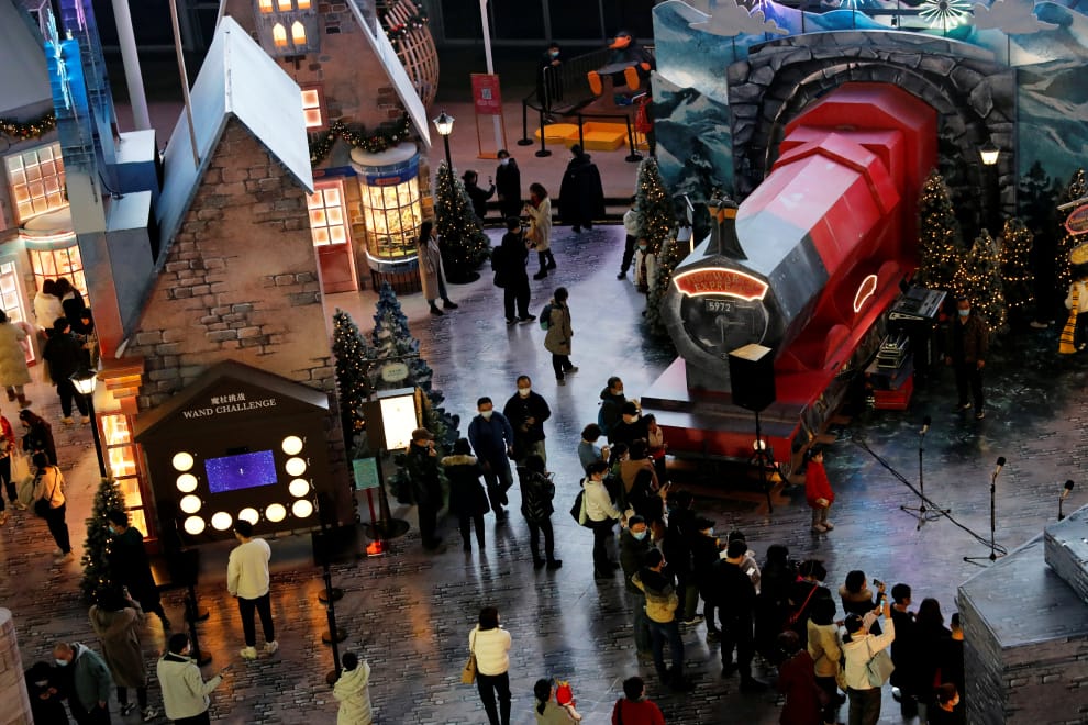 在中國北京一間購物中心內,商場找了一塊空地,佈置出哈利波特(Harry Potter)主題的佈景以吸引路過的消費者們。