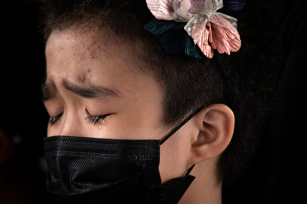 在菲律賓首都馬尼拉北方 230公里的塔拉克省(Tarlac province)帕尼基鎮(Paniqui town),一名親戚在法蘭克(Frank Anthony Gregorio)和法蘭克的母親索妮雅(Sonya Gregorio)的葬禮上流下不捨的眼淚。