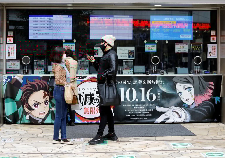 根據《日本時報》的報導,一間在東京六本木的電影院曾有單天放映超過 40次《鬼滅之刃》的紀錄,顯見這部電影的受歡迎程度。