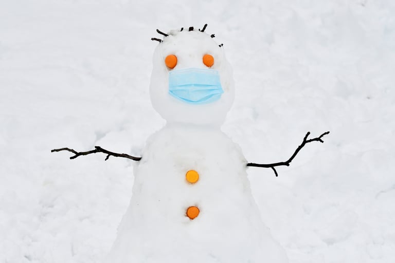 在義大利大城米蘭附近的納維廖河畔切爾努斯科鎮(Cernusco sul Naviglio),有人在路旁堆了一尊雪人,還貼心地替它戴上一副口罩。
