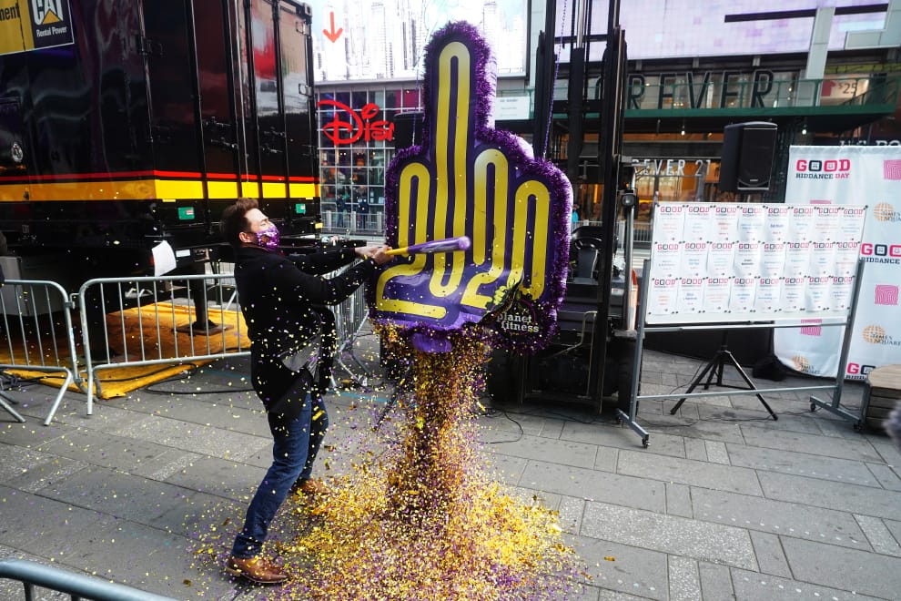 在美國大城紐約市的時代廣場(Times Square),每年 12月28日是一年一度的「大解脫日」(Good Riddance Day)。在活動上,一名男子拿起一根棍子,揮向一個象徵 2020年的皮納塔(pinata,註),宣洩人們對 2020年的不滿。