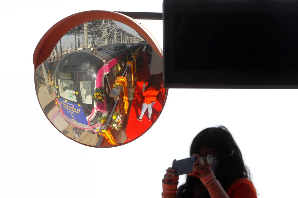 在印度首都新德里,德里地鐵(Delhi metro)為啟用旗下第一台自動駕駛列車舉辦了一場啟用典禮,一名女子也在典禮上拿起手機,拍下列車緩緩上路的畫面。