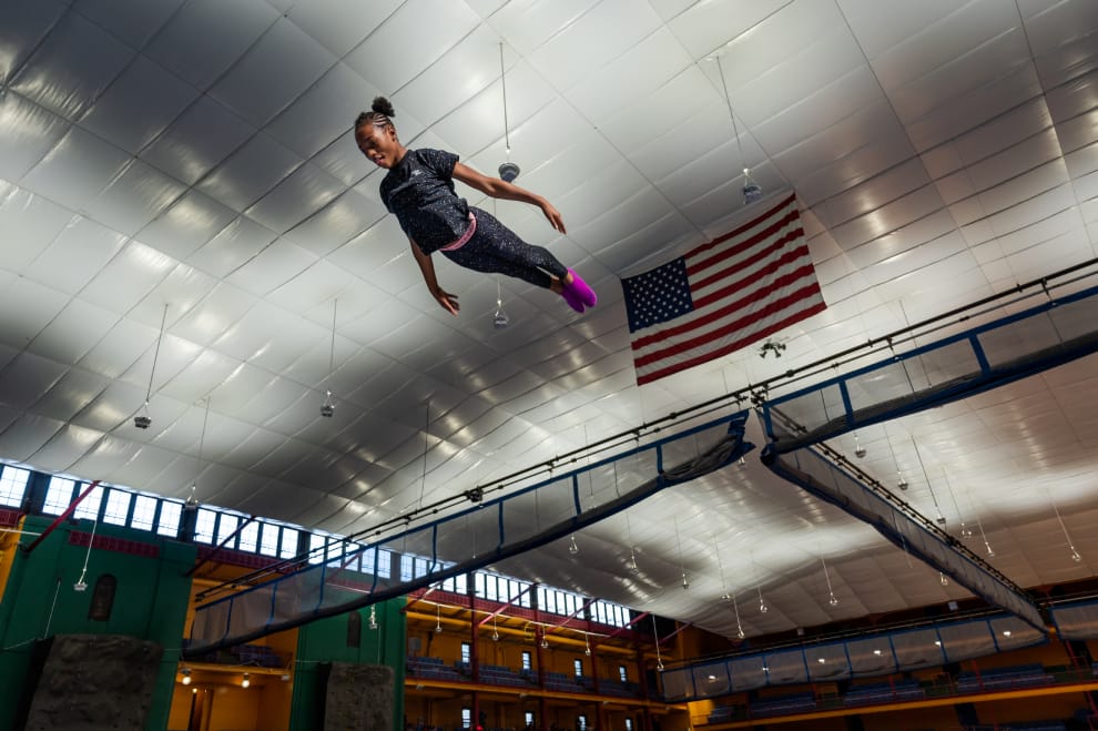 在美國紐約市,12歲的體操選手莫里斯(Ty-La Morris)正在溫蒂·希廉亞德體操基金會(Wendy Hilliard Gymnastics Foundation)的訓練館中訓練。