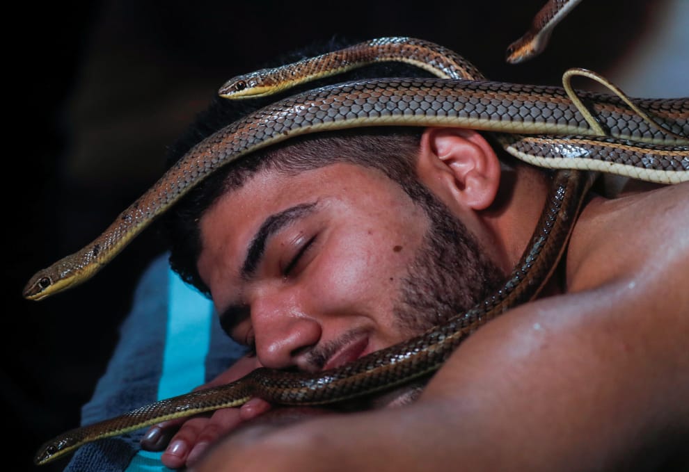在埃及首都開羅,按摩師席奇(Safwat Sedki)的店提供一種獨特的服務,他會將數隻無毒的蛇放到顧客身上,藉此按摩顧客的背。