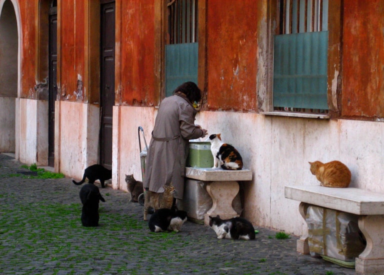 羅馬街頭流浪漢也養貓,知名古蹟萬神殿附近一個常駐的乞者與他的老貓,幾乎成為數十年來街頭固定的一景。2020年8月底老貓被偷,事情還鬧上媒體,主流報紙和社群紛紛動員協尋老貓,痛批把老貓與長年相伴的主人拆散是人間最殘酷的打擊,鄰近餐廳員工感性地說,即使該名流浪漢餐風露宿,也不忘在貓的餐盤擺放鮮食和潔淨飲水,可說為羅馬的人貓情緣再添一筆佳話。