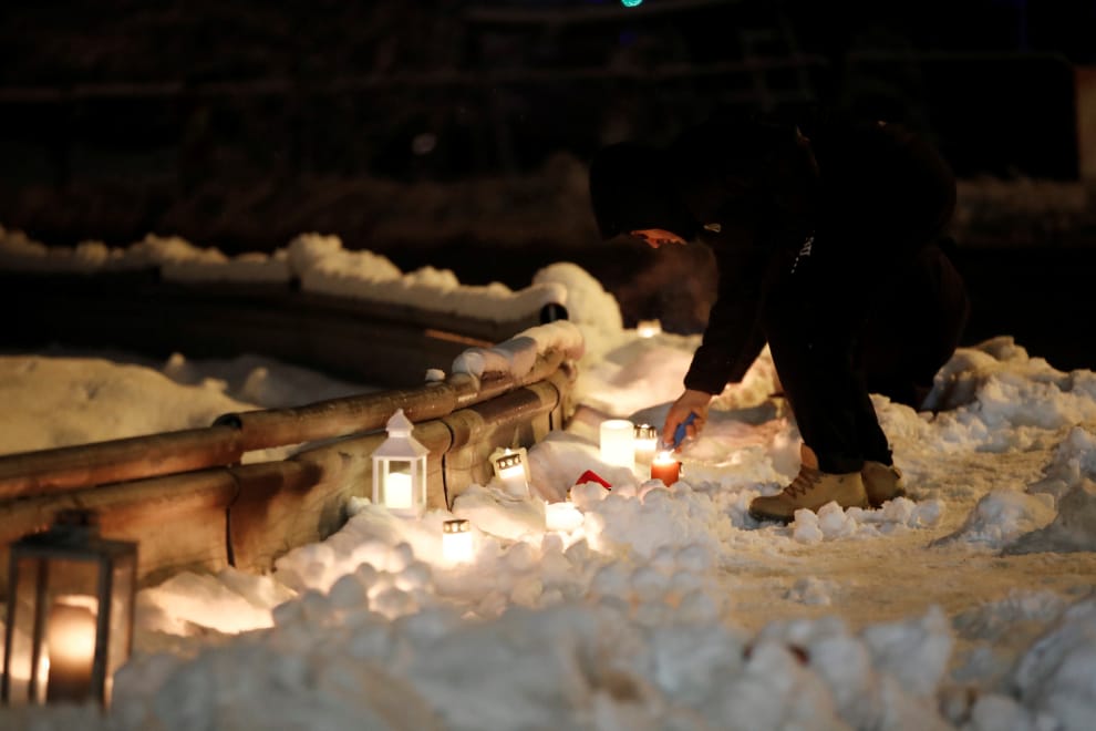在2021年的第一天,人們沿著走山事故的外圍擺上一整圈的蠟燭。
