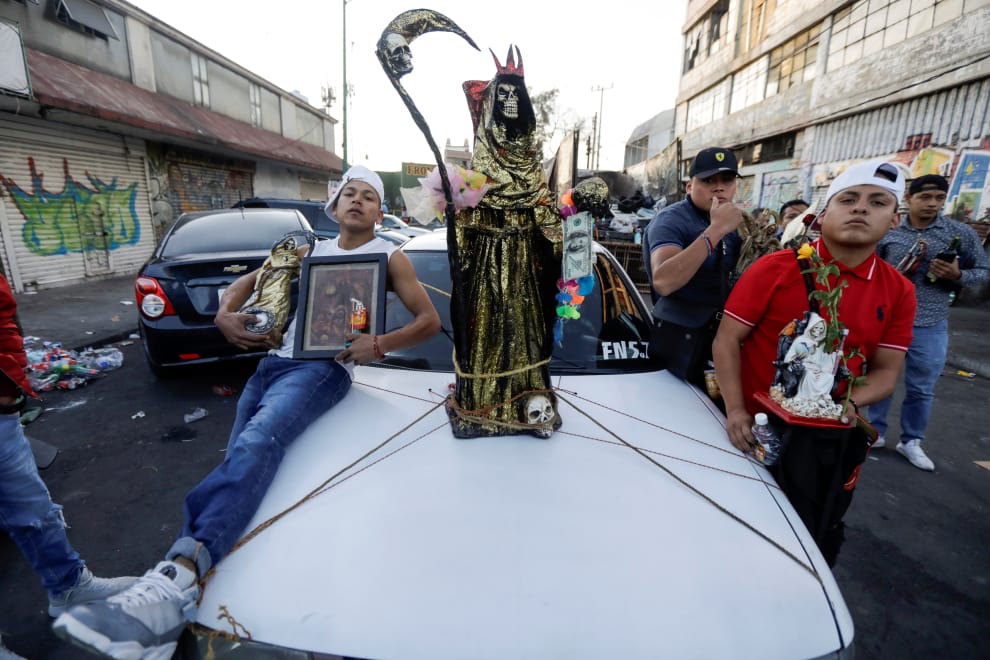 信徒帶著死亡聖神(Santa Muerte)的雕像走過大街小巷,以感念祂所帶來的恩惠與奇蹟。死亡聖神是墨西哥民間信仰的女神,其融合自中美洲對死亡的崇敬以及天主教信仰裡的神聖意向。