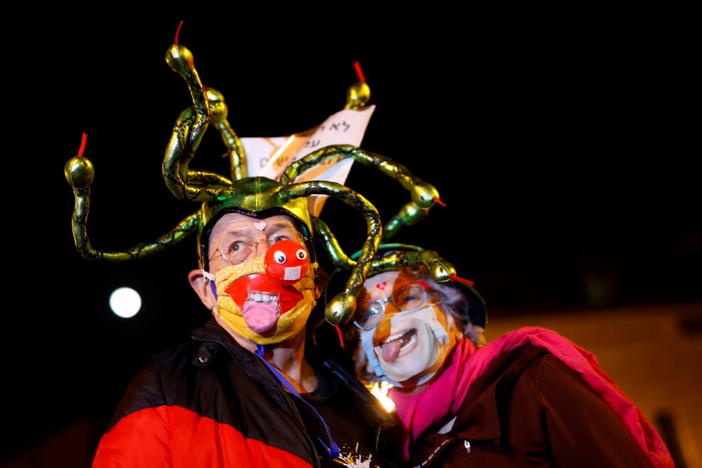 一名示威者戴著自製的蛇髮女妖美杜莎(Medusa)頭套走上街頭,要以色列總理納坦雅虎(Benjamin Netanyahu)為貪汙指控,以及防疫不利的政策下台以示負責。他們選擇的示威地點位於納坦雅虎的住處附近。