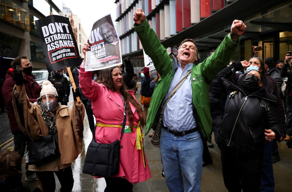 在中央刑事法院外頭,《維基解密》(WikiLeaks)創辦人阿桑奇(Julian Assange)的支持者高聲歡呼,慶祝法院剛剛駁回了將阿桑奇引渡美國的請求。