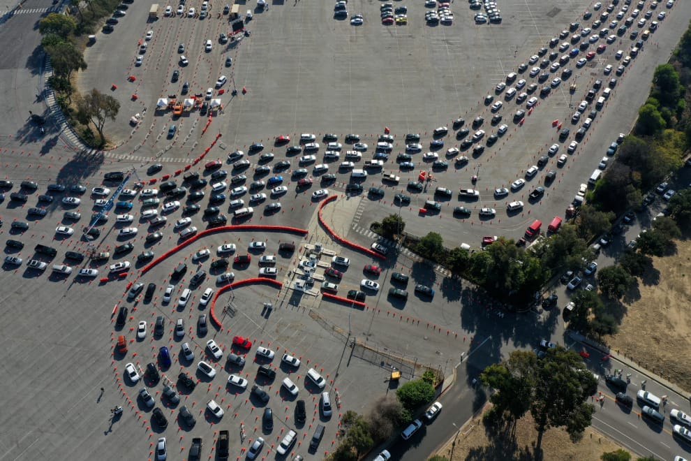 看不見盡頭的車潮排在洛杉磯道奇體育場外,耐心等著要接受COVID-19(武漢肺炎)檢測。據稱,道奇體育場從今年 5月到現在已經篩檢超過 100萬人,而且隨著疫情升溫,現在想要預約篩檢都只能排到隔天以後的時段。