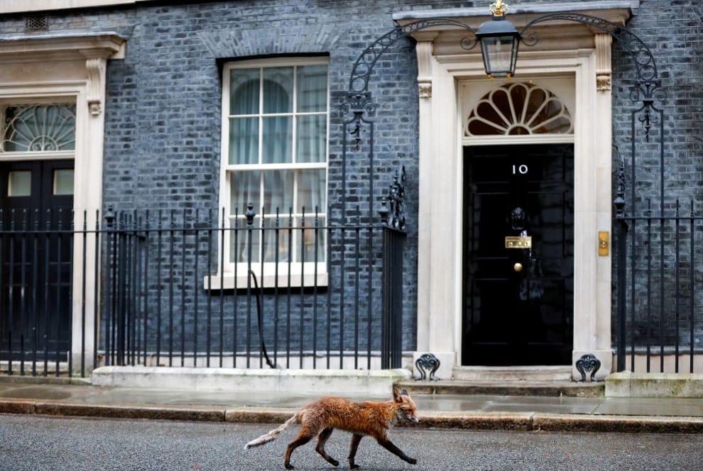 在英國首相官邸唐寧街10號(10 Downing Street)外,攝影師的鏡頭捕捉下了一隻快步走過的小狐狸。