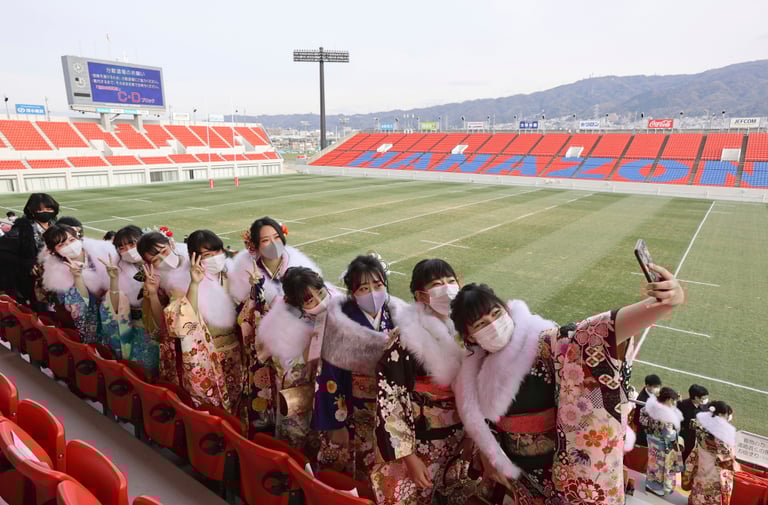 每到這個時候,散居日本各地的少男少女通常都會回到故鄉,參加家鄉地方政府為他們舉辦的成年禮儀式,順便跟高中故友敘舊,晚上更是開趴慶祝的時光。通常,少女們會身著未婚女性才能穿著的華麗振袖,少男們則以一襲西裝搭配,然而因為COVID-19(武漢肺炎)疫情蔓延的關係,今年許多地方政府紛紛取消舉辦成年禮,或是用不一樣的方式舉辦。