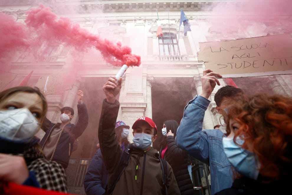 這樣的狀況引起數十名學生不滿,他們齊聚在羅馬街頭靜坐抗議,要求政府還給他們可以面對面授課的學校。