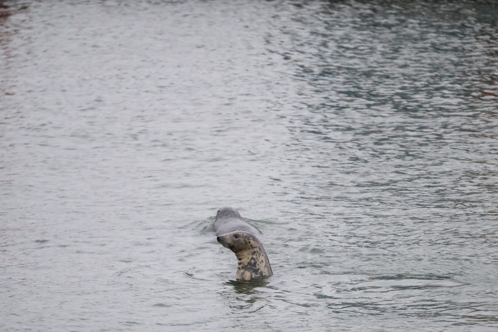 在蘇格蘭城鎮特倫(Troon)的港口,小海豹們在滯留於此的漁船之間悠游。