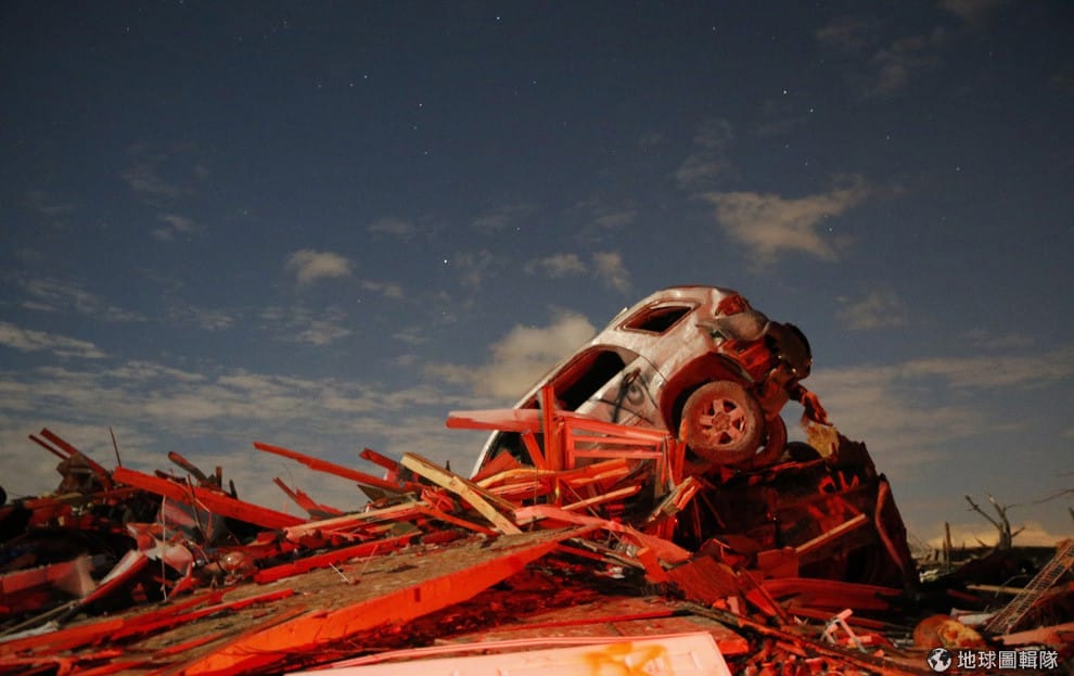 美國伊利諾伊州出現龍捲風災情,照片中的車輛因為龍捲風衝擊毀壞,和許多毀壞的磚瓦堆在一起。上周日因為一個移動迅速的氣候系統讓美國出現許多龍捲風現象,這次的風災也釀成至少5名民眾不幸身亡、40多人受傷