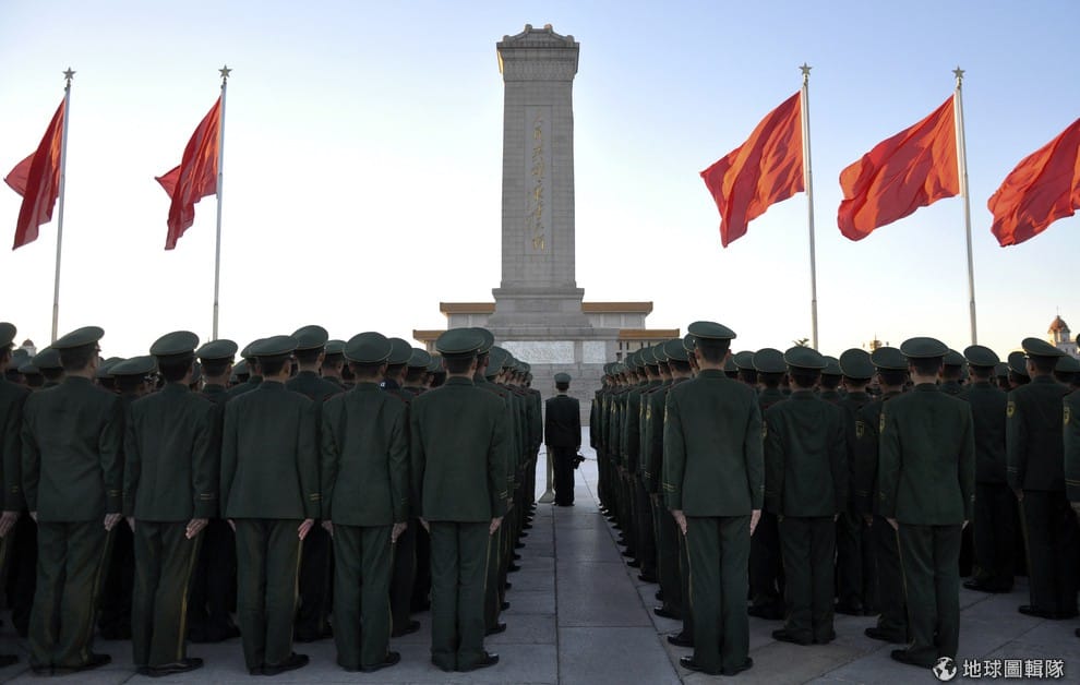 中國的公安人員排隊向天安門廣場上的人民英雄碑致敬。新的國家安全會議讓中國政府在面對國內外的抗議聲浪時,可以口徑一至地回話