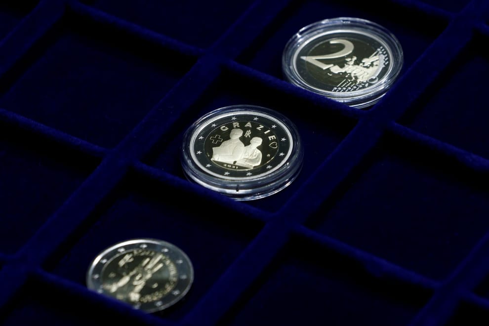 在位於羅馬的義大利鑄幣廠內,工作人員向鏡頭展示了他們新設計的兩歐元硬幣,上頭刻有在這次COVID-19(武漢肺炎)疫情中盡心盡力的醫護人員。