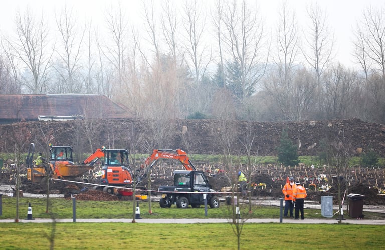 在東北區的倫敦(London),多台怪手正在開挖,以預備更多的墓地。英國為歐洲地區的疫情重災區,目前已有超過 360萬民眾確診,並有近 10萬人因此喪生。