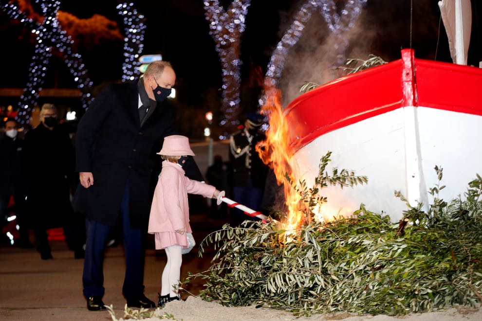 在一年一度的傳統慶祝活動Sainte Devote celebration中,摩納哥王室成員正在為漁船點火,完成象徵性的燒船儀式。