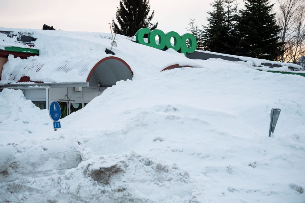在恩舍爾茲維克市(Ornskoldsvik),一間本地超市被大雪掩埋,只露出部分的門窗和頂上的招牌。