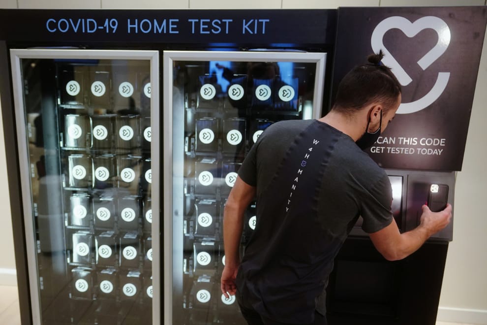 在紐約的曼哈頓,一台自動販賣機開始販售COVID-19(武漢肺炎)的檢測套組,只要使用智慧型手機,就能以 119美元(折台幣約 3,300元)購買,並在寄回樣本後的一到兩天內得到檢測結果。