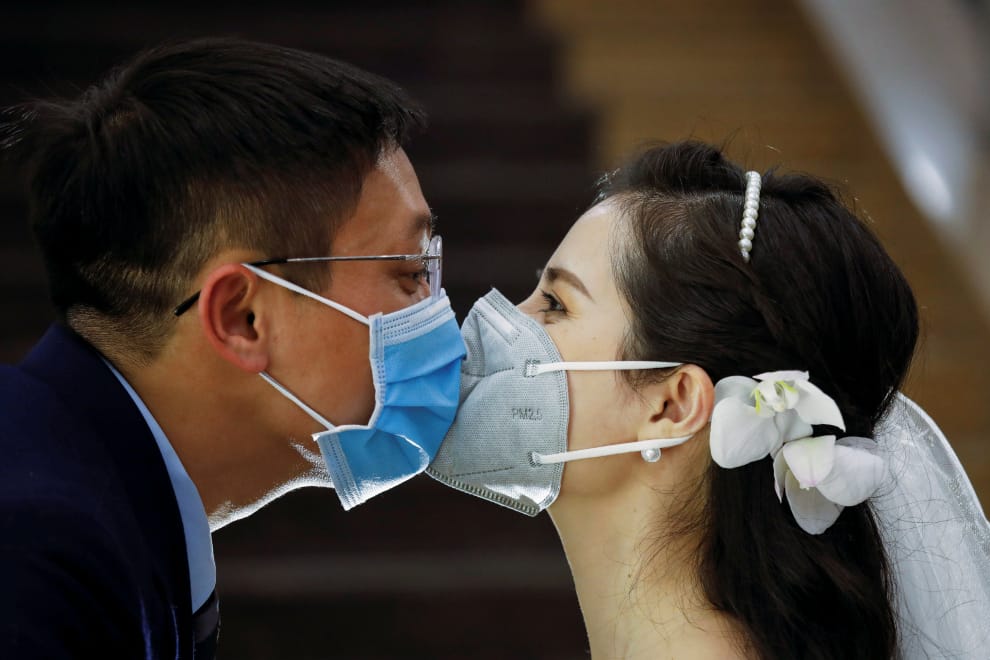 在首都河內,兩位牙醫師於這天成婚,但即使是在親吻對方的時刻,他們也沒有把口罩拿下來。