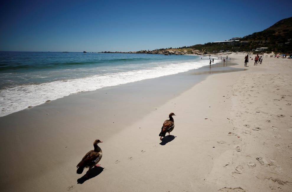 在首都開普敦(Cape Town)的海灘,鴨子在海灘上散步的模樣被捕捉了下來。