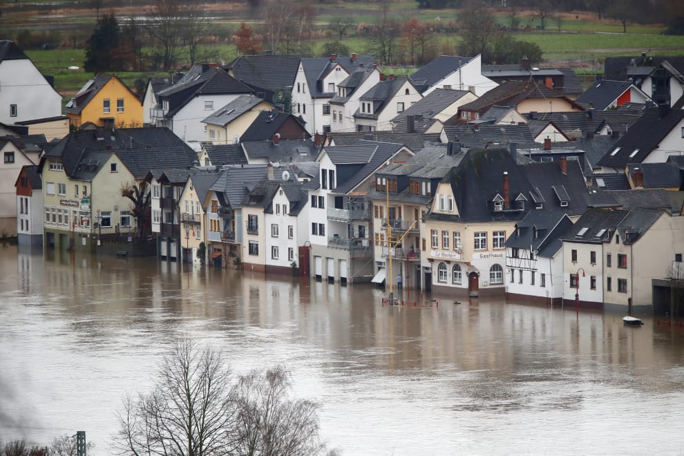 連日來的降雨造成萊茵河(Rhine)部分河段潰堤,在德國的城鎮法倫達爾(Vallendar),河水甚至直接淹過整個街道,居民只要從家門走出來就是河。