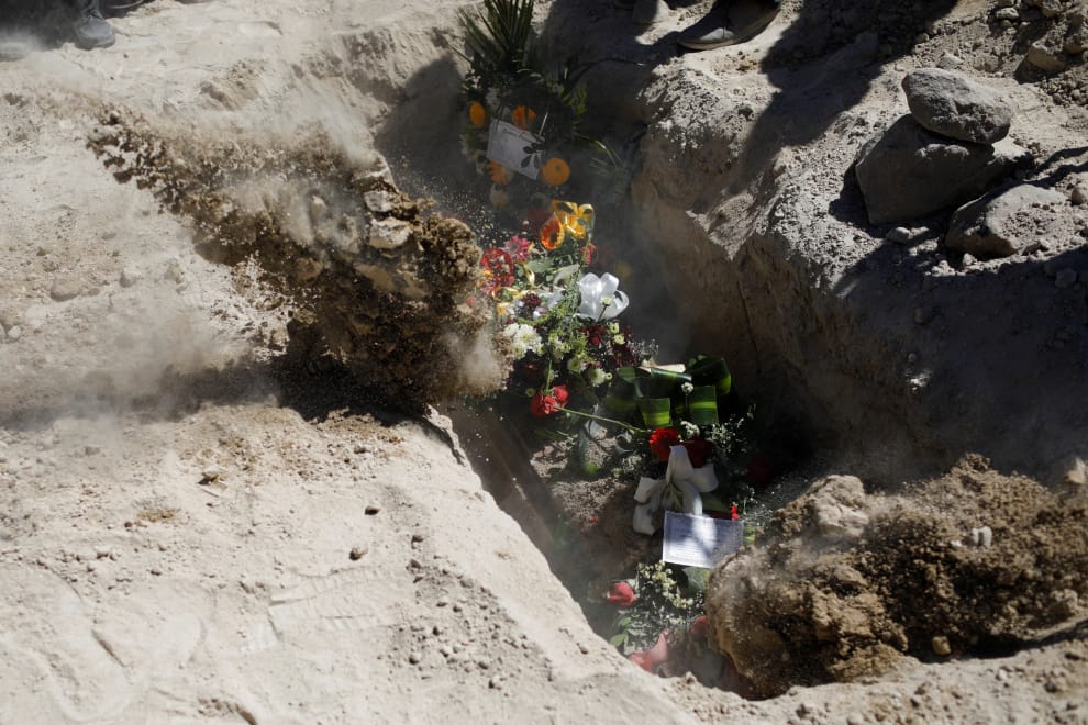 在首都聖薩爾瓦多(San Salvador)的葬禮現場,人們準備安葬一名被殺害的在野黨支持者。