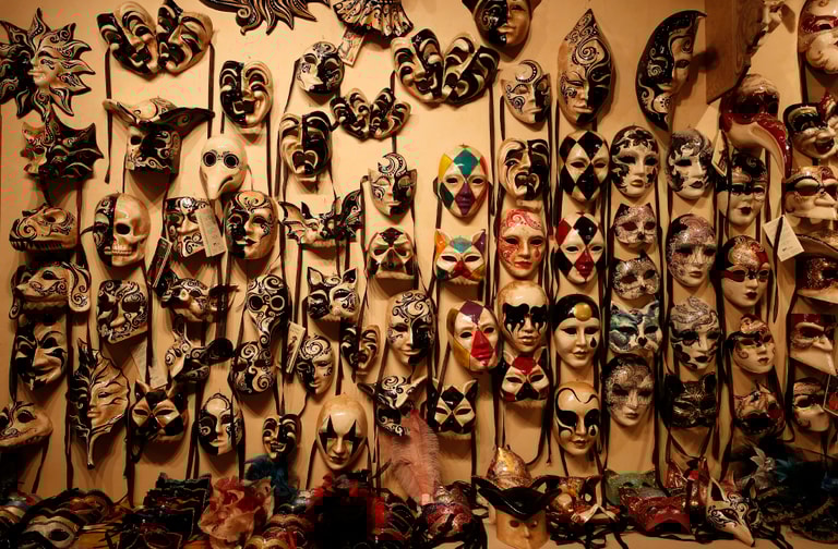 在威尼斯的一間面具店Tragicomico,老闆德拉斯托(Gualtiero Dall’Osto)便認為,面具(mask)應當是「保護、展現,以及確保匿名性的方式」。
