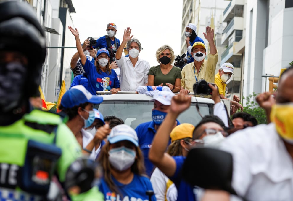 在城市瓜亞基爾(Guayaquil),穿著白襯衫的總統候選人拉索(Guillermo Lasso)站在車上和選民致意。本月 7號為厄瓜多總統大選,4號這日為競選活動的最後一天。