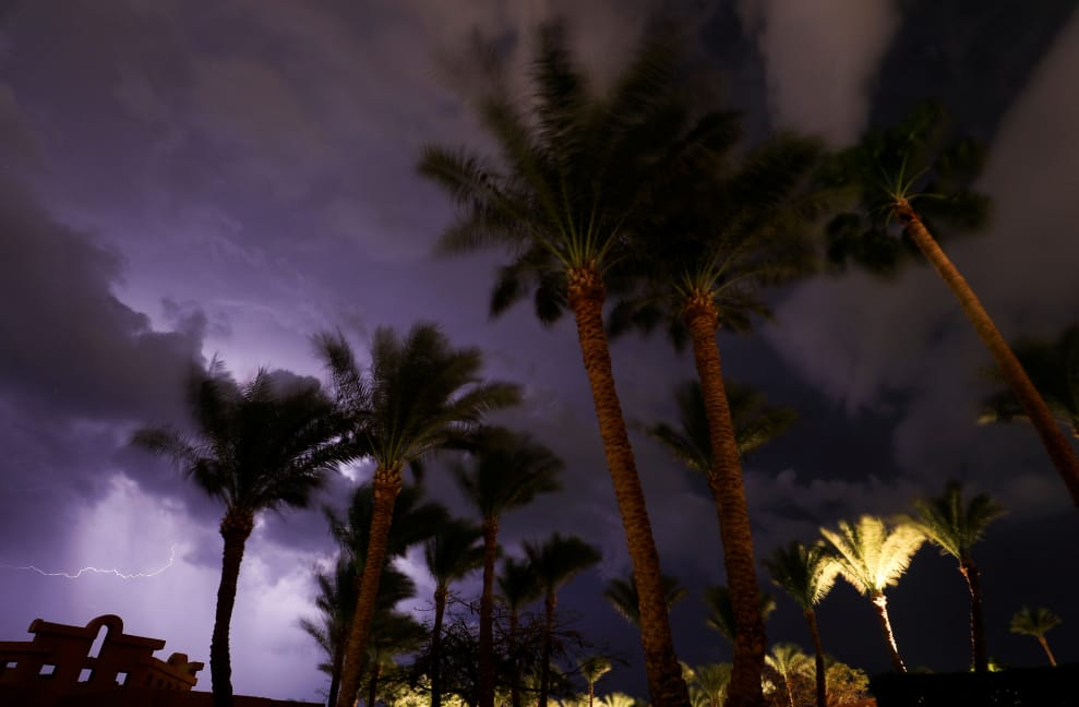 一道閃電劈過了城市沙姆沙伊赫(Sharm el-Sheikh)的上空,照亮了整片天際。