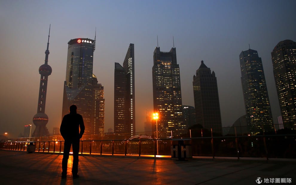 一名男子遠望上海浦東區的大樓。中國的中央銀行首長周小川表示將要加速人民幣匯率的改革,讓人民幣的兌換可以更自由,換句話說,中國將循序漸進地擴大人民幣匯率浮動區間。這次的改變宣言也是中國近30年來最大的一次經濟變革