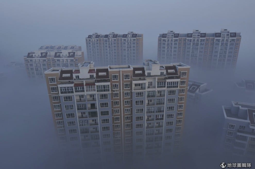 新疆維吾爾自治區中一幢大樓被厚重的霧霾環繞