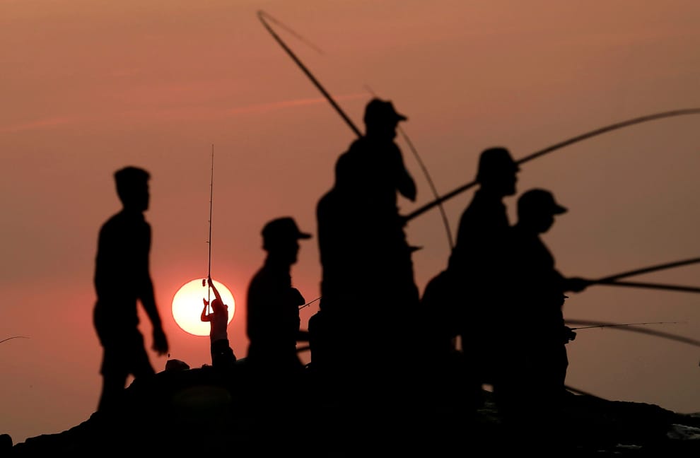 在斯里蘭卡首都可倫坡(Colombo)附近海域的一塊石頭上,釣客們耐心地在此等待大魚上鉤。