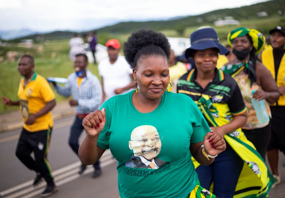 在南非東北部的小鎮恩坎德拉(Nkandla),南非前總統祖馬(Jacob Zuma)的支持者在他家前方舉辦了一場小遊行,一行人在祖馬家前方的大馬路上載歌載舞。