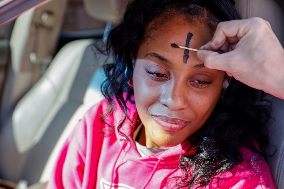 在美國喬治亞州大城亞特蘭大的天主教聖彼得與聖保羅教會(Saints Peter and Paul Catholic Church),17號這天是天主教的重要節慶「聖灰星期三」(Ash Wednesday),神父斯莫(Bryan Small)拿著棉花棒,將手伸進車窗,以灰燼在拉蒂摩爾(Netanya Lattimore)的頭上畫了一個小小的十字。