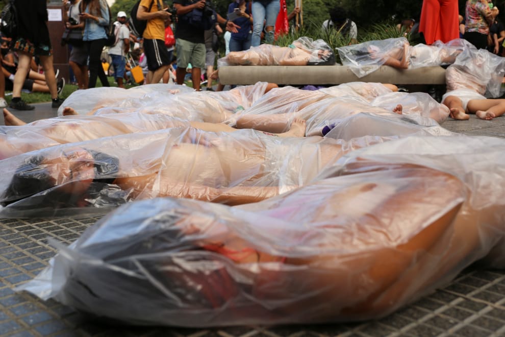 在阿根廷首都布宜諾斯艾利斯市(Buenos Aires),近期阿根廷傳出一名 18歲的女性遭前男友持刀刺殺的案件,消息流傳開後,立刻引發阿根廷民眾的憤怒,一群女性示威者更當眾脫去衣衫,躺在塑膠袋內,要求阿根廷政府採取更積極的行動處理國內的婦女暴力問題。