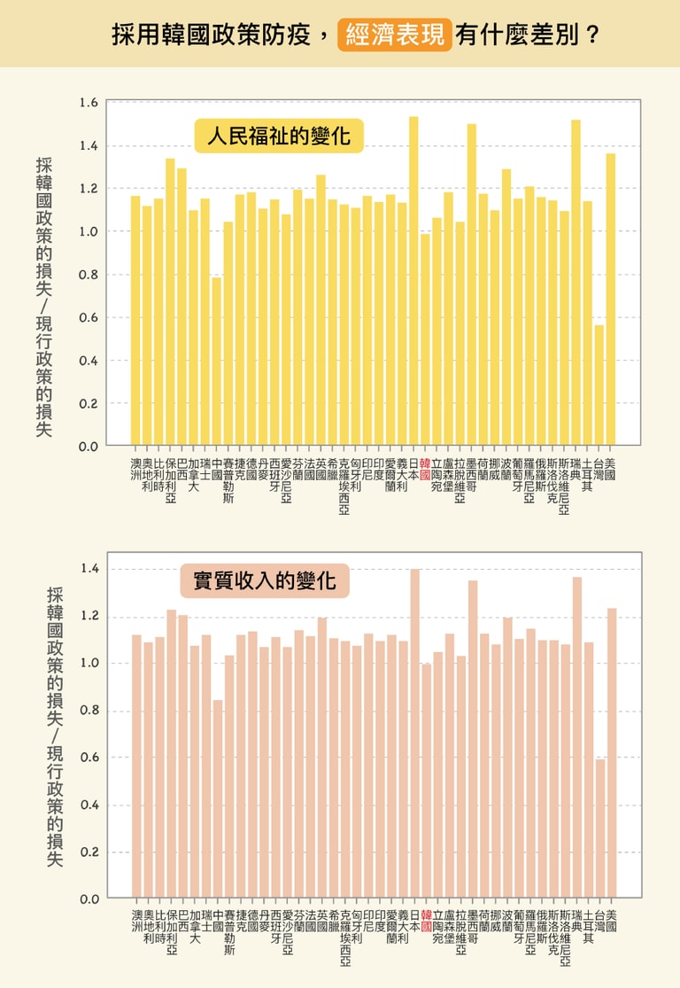 看起來,以韓國作為標竿從嚴防疫,對多數國家經濟福祉並不利。難道,防疫真的是經濟殺手?