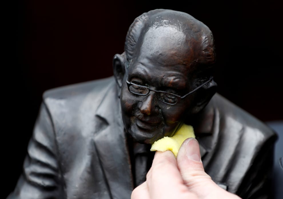 在英國第三大城里茲市(Leeds),一名藝術家正在擦拭他以替英國NHS募得 3,200萬英鎊(折台幣約 12億9,952萬元)、最近才剛去世的穆爾(Tom Moore)爺爺為靈感,創作出的小雕像〈會走路的希望〉(The Walk of Hope)。