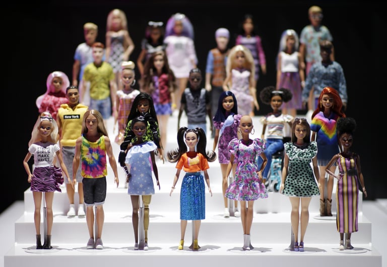 去年,美泰兒便推出了一組號稱是「有史以來最多元的芭比系列」,將以往少見的光頭、坐輪椅、義肢等造型作為芭比娃娃設計的一環,各個娃娃的身材、髮型、膚色等也增加不少變化,不再像過往一樣,清一色全是皮膚白皙、金髮碧眼的造型。