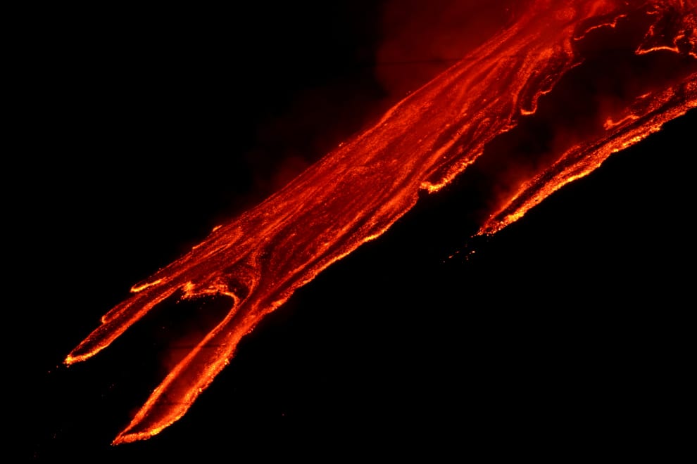 在市鎮扎費拉納埃特內亞(Zafferana Etnea),歐洲的著名活火山「埃特納火山」(Mount Etna)再度爆發,紅色的岩漿在地表上快速蔓延。自本月 16號以來,埃特納火山已經爆發至少四次。