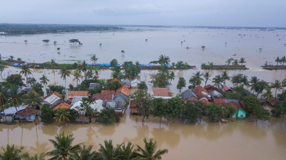 在上周末的豪雨過後,印尼首都雅加達,以及位在其隔壁的勿加泗市區,皆出現了嚴重的水災。從這張來自勿加泗的照片可以看到,大水淹過了所有的道路,讓市區變成一片汪洋。