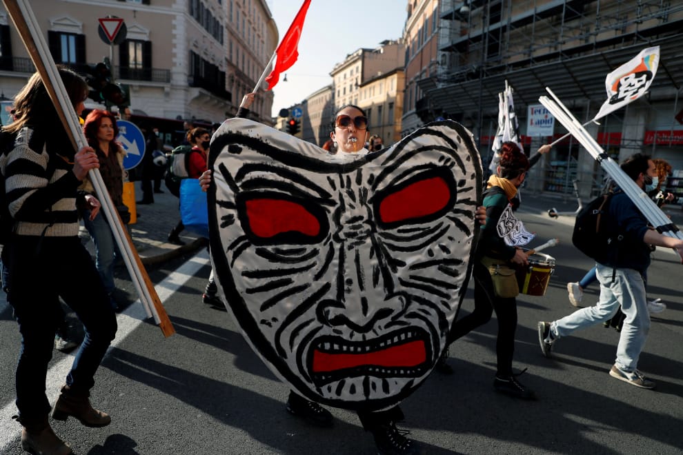 在羅馬(Rome),娛樂產業的人們走向街頭,反對義大利政府的COVID-19(武漢肺炎)防疫限制。他們在這次的集會中要求政府重新開放電影院和戲院。