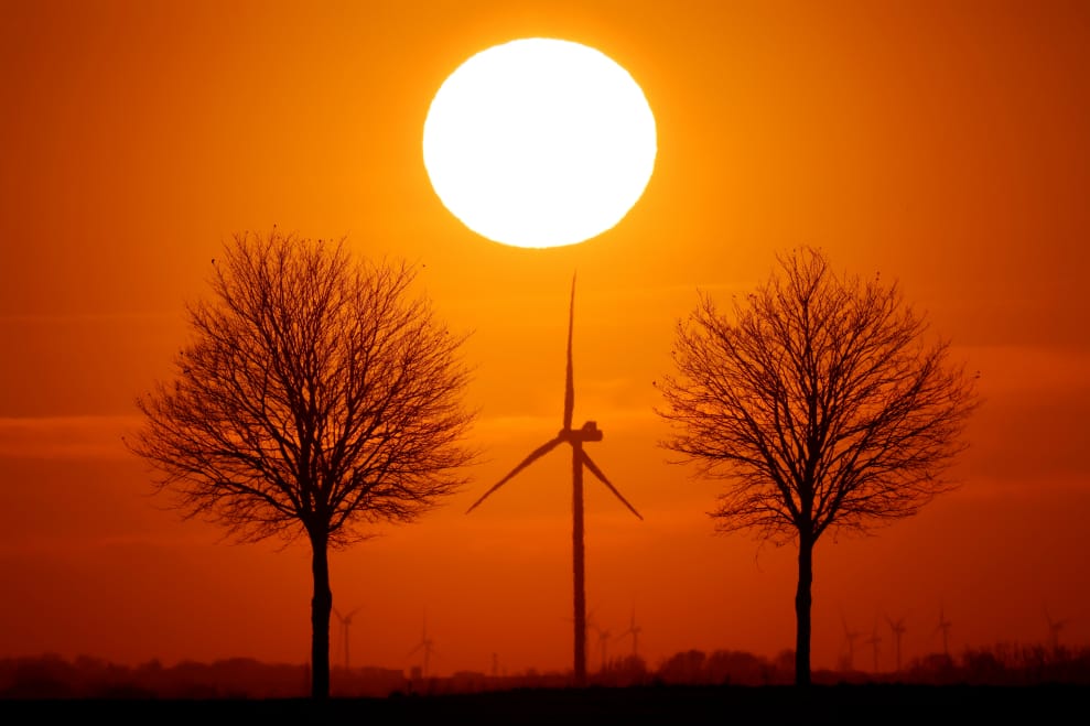 在北部的市鎮布爾隆(Bourlon)的傍晚,夕陽將天空染成了一片橘紅。
